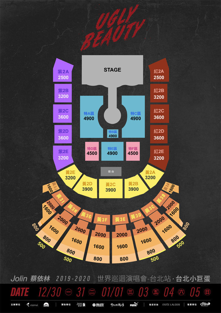 | ✅ | 一般票價: | 4,900/4,500/3,900/3,600/3,200/2,500/2,000/1 ,600/800/500 |