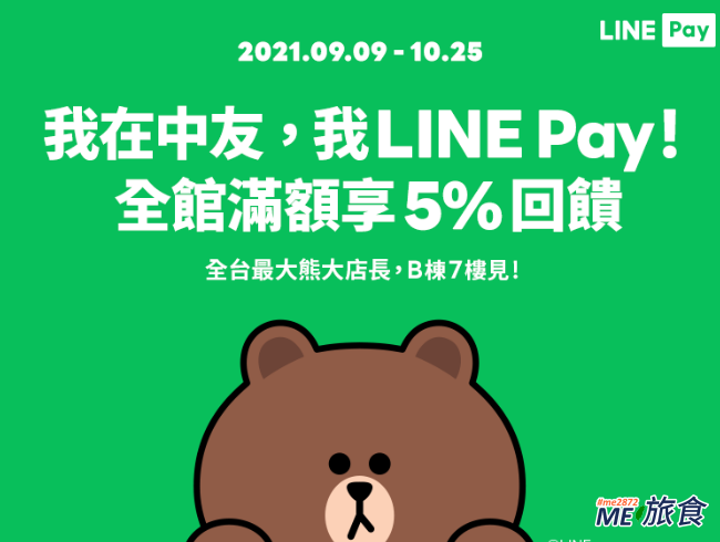 LINE Pay 中友百貨 滿額最高享LINE POINTS 5%回饋!